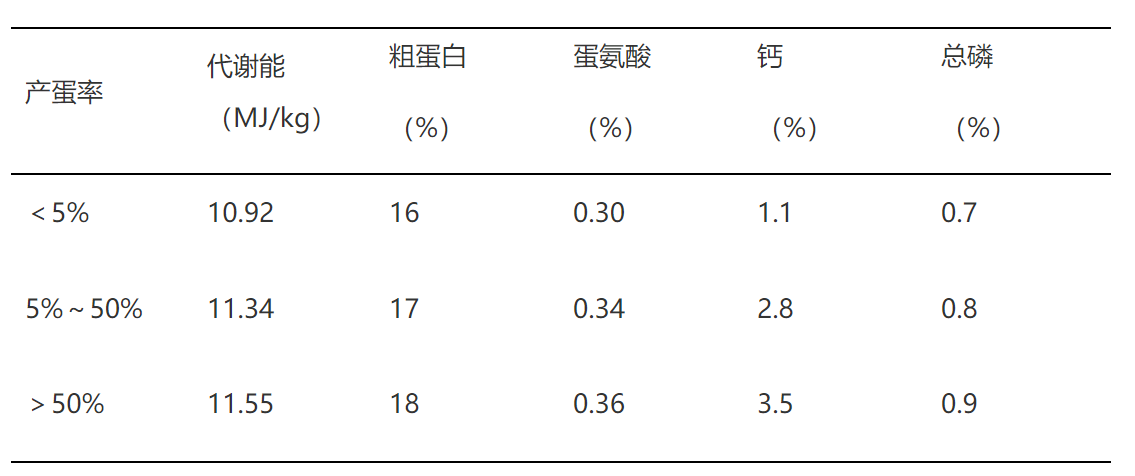 3.品种选择:可选择山麻鸭、绍鸭、卡基康贝尔鸭、金定鸭等适应性强、产蛋性能高,且能适应当地气候条件,符合市场需求的小型蛋鸭品种。 4.营养水平:笼养蛋鸭日粮营养水平可参照表1。