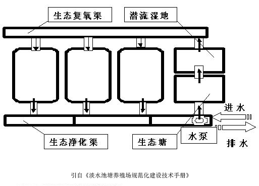 <p>1.建设区域要求 各地连片精养池塘,周边无稻田或直排江、河的养殖池塘均应因地制宜地建立尾水处理,并依据池塘养殖尾水排放量,排放去向(尾水去向的确定依据《淡水池塘养殖水排放要求》(SC/T9101-2007)的排放水域划分来定),选择尾水处理功能环节,设立尾水处理流程,建设尾水处理设施设备。 2.建设内容与要求 2.1生态沟渠建设 把养殖池塘排水沟(渠)修建成具有自身独特生态结构并发挥相应生态功能的沟渠系统,称为生态沟渠。 依据养殖排放尾水的实际情况,决定生态沟渠的修建方式。 2.1.1简易植被沟渠 适应尾水排水量少,沟渠有一定的长度,两边未硬化,沟渠两边坡上种植草本植物,沟渠中选择适合当地生长的水生植物品种,底部可种植沉水植物,沟渠两边可种植挺水植物。密度与摆放以不阻挡水流流动为宜。 2.1.2生态沟渠 适宜沟渠大而长,尾水排放量大的养殖区域。 修建方式:沿总沟渠内的水流方向设置垂直于沟渠底的3条分隔墙,将总沟渠分隔为沿水流方向一致的四部分;每部分沟渠道内分别作如下设置: (1)生态沟渠I区:占用整个沟渠的30%左右,种植大型挺水植物(如美人蕉、芦苇稻、野茭白、慈菇、香捕、耦、水芹菜等)种植密度为1~2株/m2水面,主要起沉淀作用; (2)生态沟渠II区:占用整个沟渠的20%左右,放置人工浮床,浮床上种植高生物量、根系发达的本地优势水生植物,如水浮莲、水葫芦、黄花水龙等漂浮植物和空心菜等浮叶植物。生物浮床大小因地制宜,间隔4m-6m,覆盖面达水面1/3~2/3。 (3)生态沟渠III区:占用整个沟渠的20%左右,放养滤食性鱼类(鲢鳙1~2尾/m2)和螺类或吊养贝类(0.5~0.8kg/m2)。还可在池底安装曝气盘或微孔曝气管,通过底部增氧方式,增加水体中溶解氧的含量,配备1台3KW左右的罗茨鼓风机,曝气头的数量按面积大小均匀安装。 (4)生态沟渠IV区:占用整个沟渠的20%左右,放置立体弹性填料(悬吊在框架中,沉入水中,占水体积的10%左右)或分子生物膜(悬挂在水中),底部种植马莱眼子菜、伊乐藻、金鱼藻、苦草、聚藻、孤尾藻等沉水植物进一步去除水体中的氨氮等有机物。 生态沟渠的每个部分在进水口位置分别设有闸门,各闸门可以同时开启或关闭,也可以分别开启或关闭。闸门的过水宽度为所在生态沟渠道宽度的80%~100%。或建过滤坝,依据实地状况确定建设大小,一般两墙宽度1~1.5m左右,高度高出水面10~20cm采用两排空心砖搭建外墙,空心砖方向与水流方向一致, 墙的两端分别深入沟渠的两岸,增加墙的稳固性和防止两边渗水。中间可用蛇皮袋装些填料,填料如活性炭、珊瑚石、蚌壳、多孔陶瓷粒或碎石等。 成效体现在于:利用现有排水沟渠改造为生态沟渠,构建成一套尾水处理系统,无需额外占用养殖场地,节约养殖用地,大大减少了环保投入成本。同时,避免养殖尾水直接排放,提高了养殖场周边生活,生产用水的质量,减少了环保压力,甚至使得养殖尾水能够循环利用,大大节约了水资源与成本。 2.2尾水处理专区建设 2.2.1设施建设布局 生态沟渠、生态塘(净水池)、潜流湿地等生态化设施和养殖池塘的组成比例应结合养殖品种、放养密度、饲养方式等特点来决定, 一般生态工程化设施的面积不超过池塘面积的20%,其布局可参考下图。
