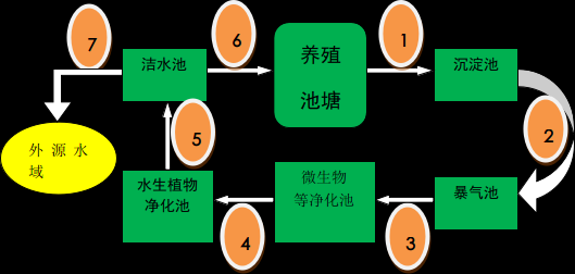 2.2.2尾水处理流程图 根据污水处理等水处理工艺,淡水池塘尾水处理通常需要如下功能环节,具体处理环节流程图如下: 流程图说明: