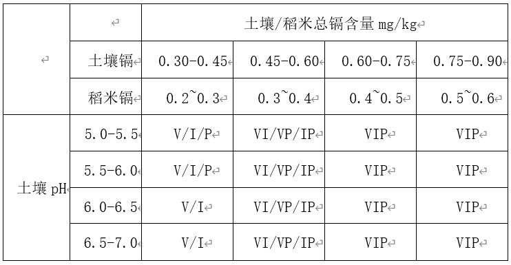 适宜区域:南方酸性中轻度镉污染稻田,土壤pH值5~7之间,土壤镉含量0.3~0.9 mg/kg之间。