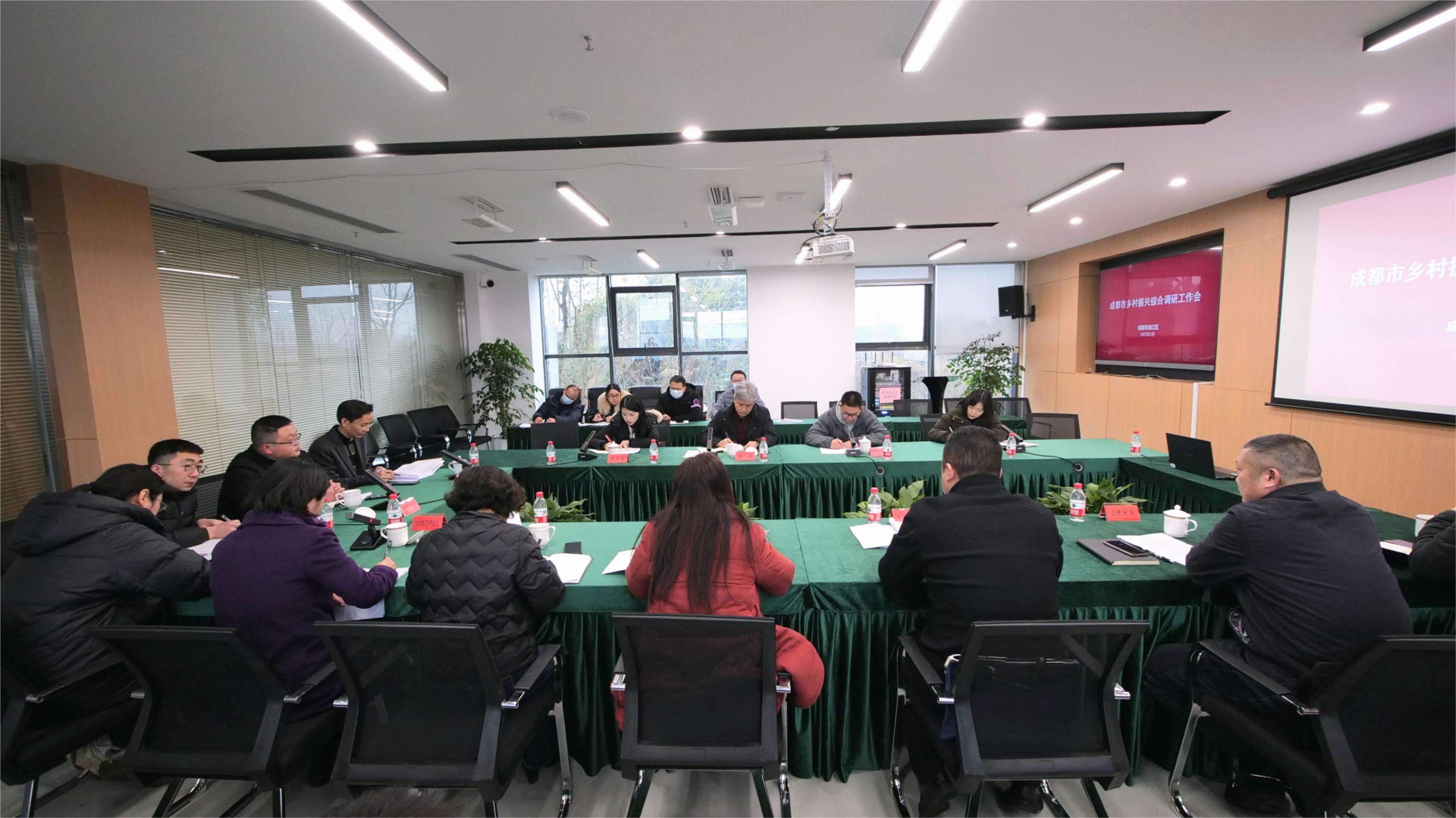 考察结束后,调研组一行在川农牛科创农庄召开成都市乡村振兴调研工作会。会上,区农业农村局、区发改局、区新经济和科技局、区民政局、区规划和自然资源局、区交通运输局、区水务局等区级部门分别就围绕抓好粮食生产、宜居宜业和美乡村建设、农民增收致富渠道、乡村治理等方面的突出困难和现实问题积极发言。