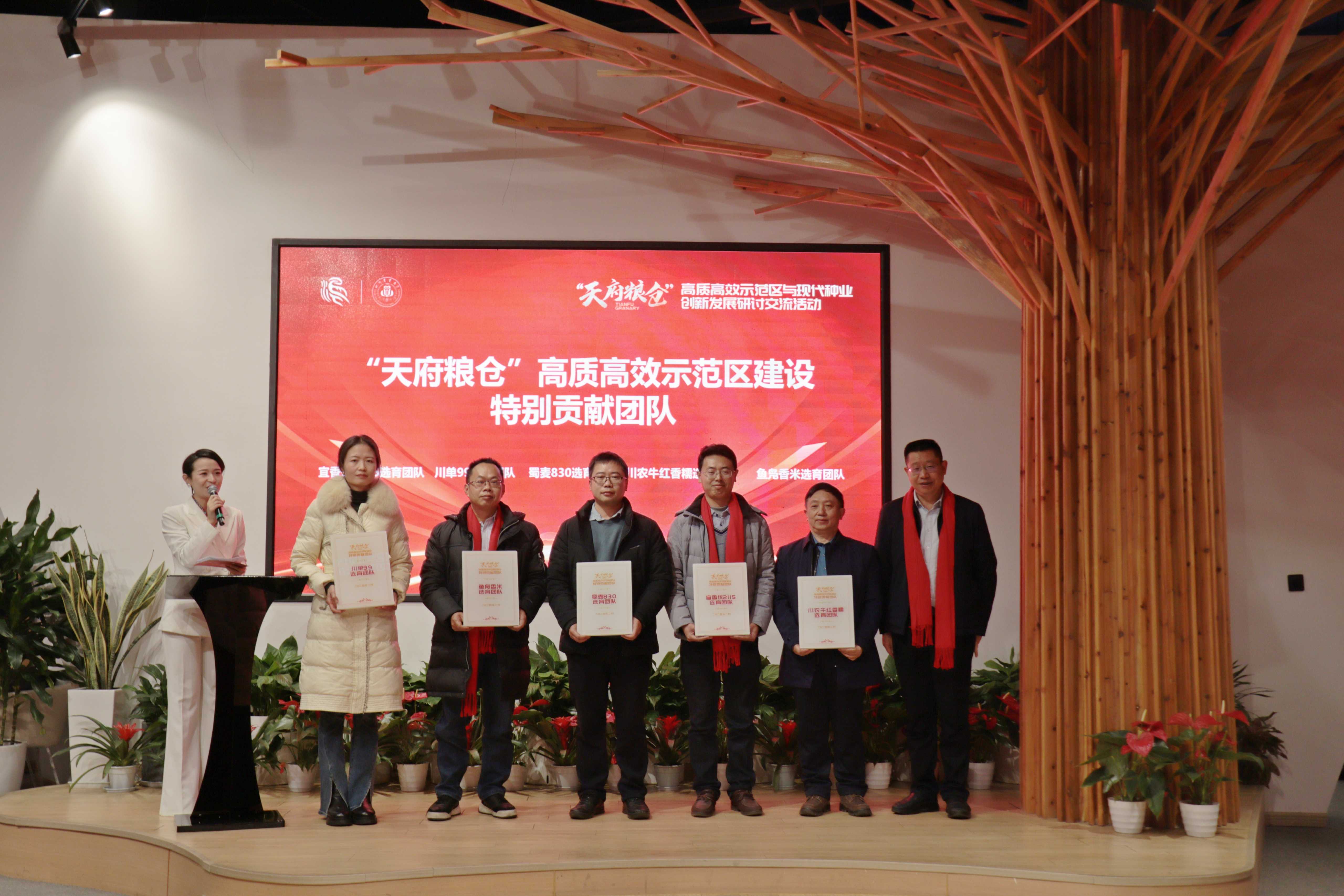 一批批扎根种业领域的团队,依靠着开拓创新的精神、坚忍不拔的毅力、顽强拼搏的干劲开展科研攻关和市场推广,为温江区现代种业创新发展作出了巨大的贡献。借此盛会,授予他们“天府粮仓“高质高效示范区特别贡献团队荣誉。