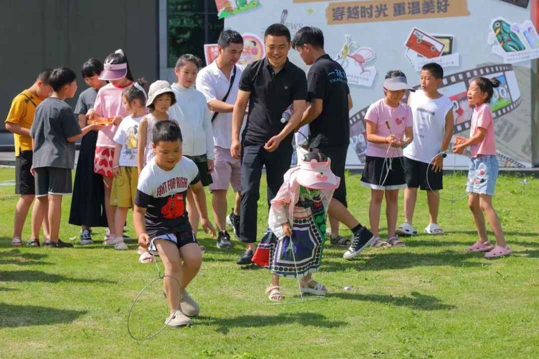 怀旧游戏环节更是笑声不断。家长与孩子组队参与“滚铁环接力赛”“亲子跳绳挑战”,在协作中拉近情感;丢手绢游戏将氛围推向高潮,亲子家庭通过趣味任务展现默契。
