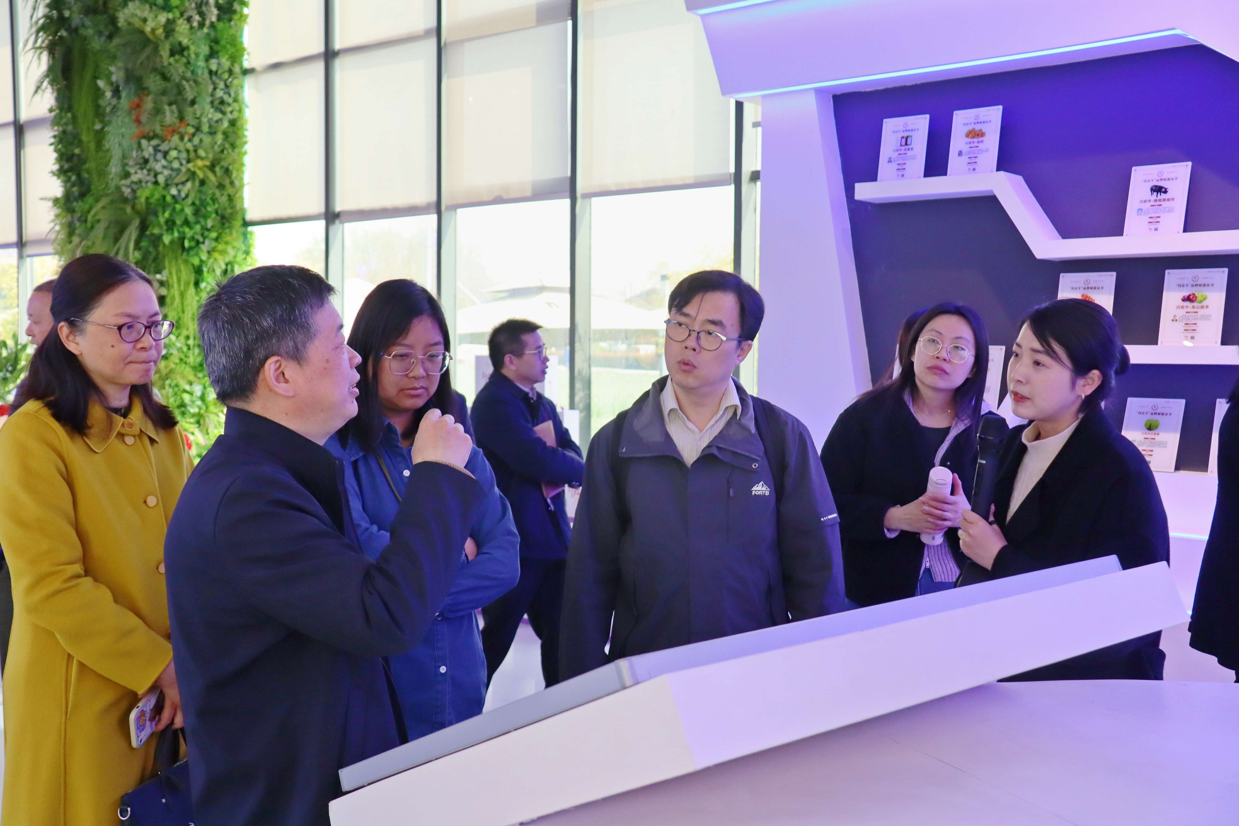 考察团一行细致了解了由四川农业大学与产研院倾力打造的“互联网+农业+科技”的信息化平台——科创乡村·云超市。科创乡村·云超市能有效整合横向与纵向资源,将科研机构、经营主体和要素平台互相串联,将实用性技术转化落地,以推动成果转化、创新孵化和新技术引进。同时,科创乡村·云超市与四川省多个现代农业园区互联、互通、互动,实现建圈强链,为都市现代农业发展赋能,以达到成都市一干多支、五区协同,及温江国家农高园研发在温江、转化在周边、服务于全川的目标,企业家们对此纷纷给予高度评价。